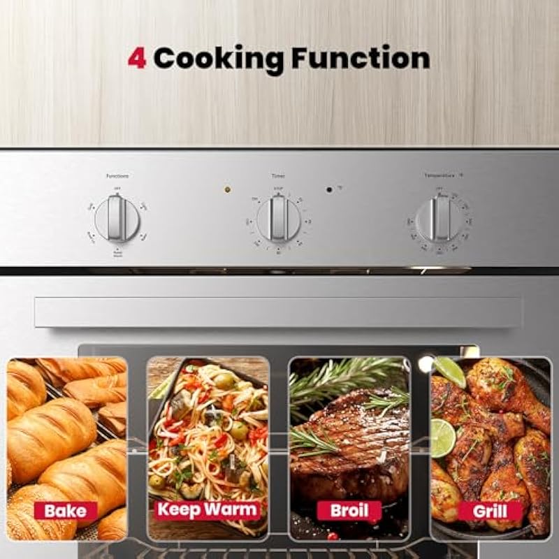 - 【5 Working Functions】This 24 inch electric wall oven offers four versatile functions—Bake, Keep Warm, Broil Lo, Light and Grill—perfect for everyday cooking and special occasions. The built-in oven design fits seamlessly into modern kitchens, with precise temperature control from 120℉ to 480℉ for consistent, delicious results.