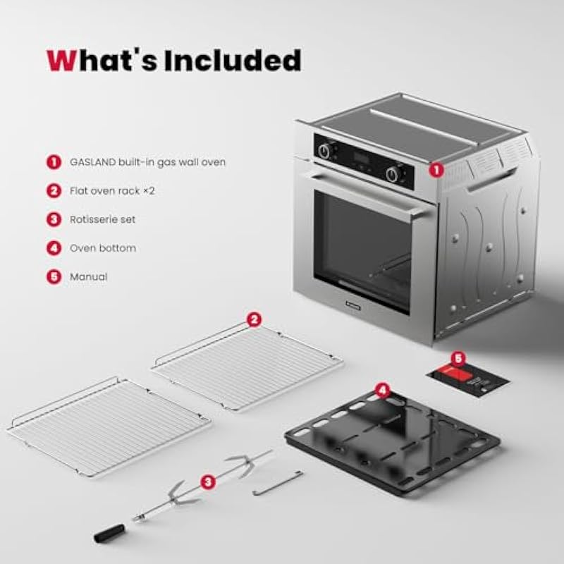 GASLAND 24 Inch Electric Wall Oven, 2.6 Cu.ft Built-in Single Wall Oven, 12 Cooking Functions, 3D Heating, Convection Oven with Rotisserie, Touch Control, Safety Lock, ETL Certified, Stainless Steel