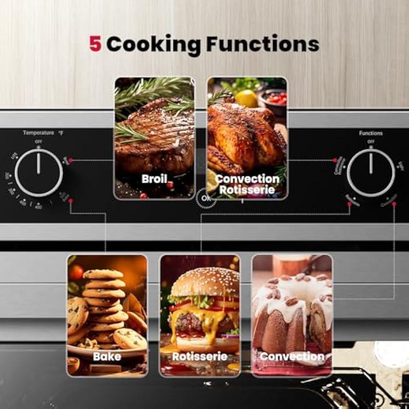 - 【6 Multi-functional Cooking Modes】This natural gas oven uses natural gas for power with temperature from 300°F to 500°F. It has 6 different working mode including broil, bake, rotisserie, convection, convection rotisserie and light.