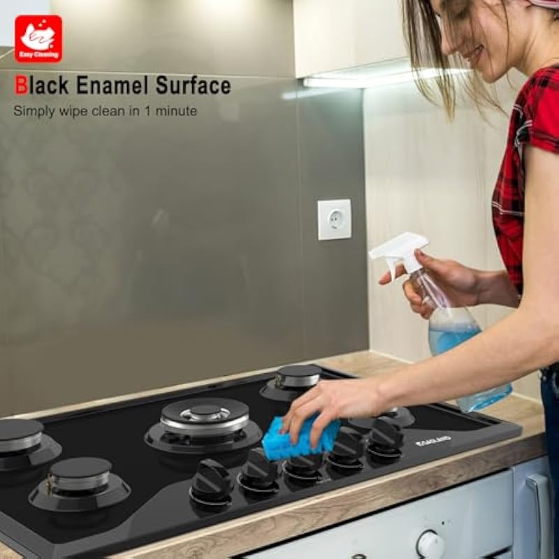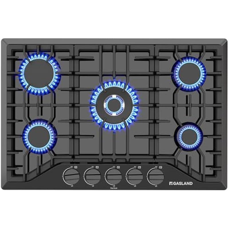 GASLAND 30 Inch Gas Cooktop Black, 5 Burner Propane Stove Top, Built-in NG/LPG Convertible Gas Cooktops, Plug-in with Thermocouple Protection, Black