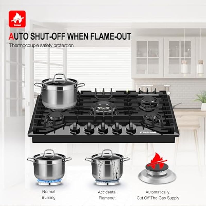 - 【Thermocouple Protection + CSA Certification】This 30 inches NG/LPG gas stove-top is CSA certified for US and Canada use including a CSA certified gas pressure regulator. The thermocouple flame-out failure device system(FFD) will shutoff the gas automatically if a flame is not detected to ensure your safety in an emergency.