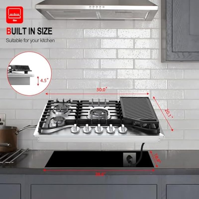 - 【2 Convertible Gas Supply 】This dual fuel gas hob is designed for natural gas and liquid propane. The initial setting is for natural gas, come with both natural gas & propane nozzles. Capable for multi-purpose such as RVs, light cooking family, small kitchen, mobile home.