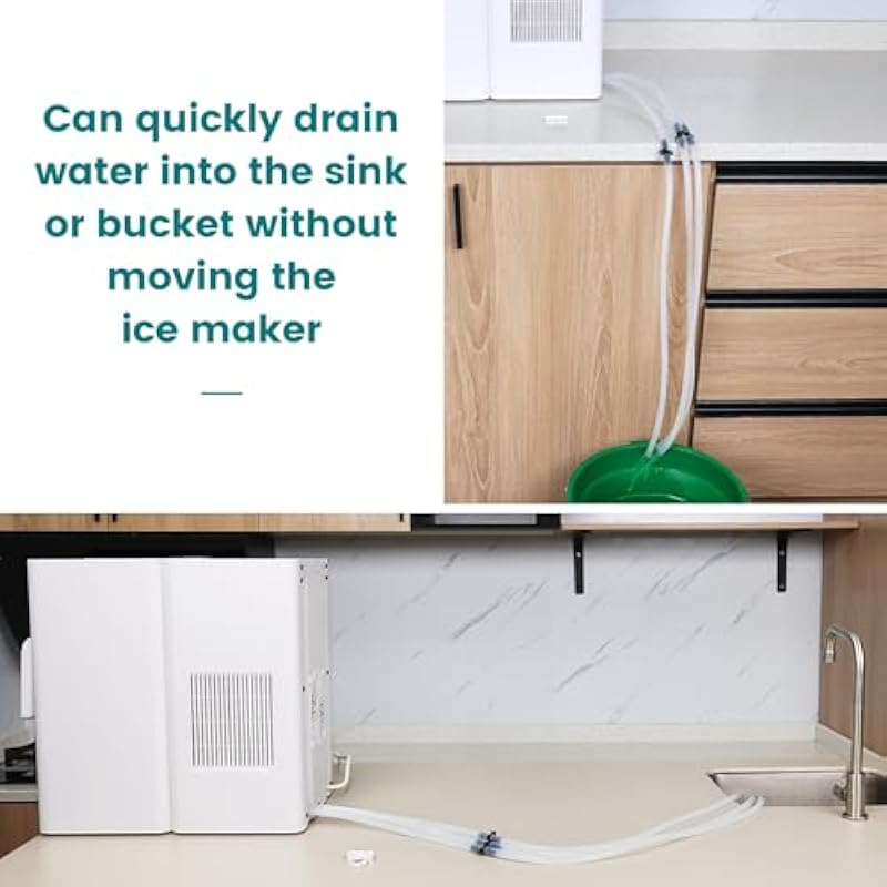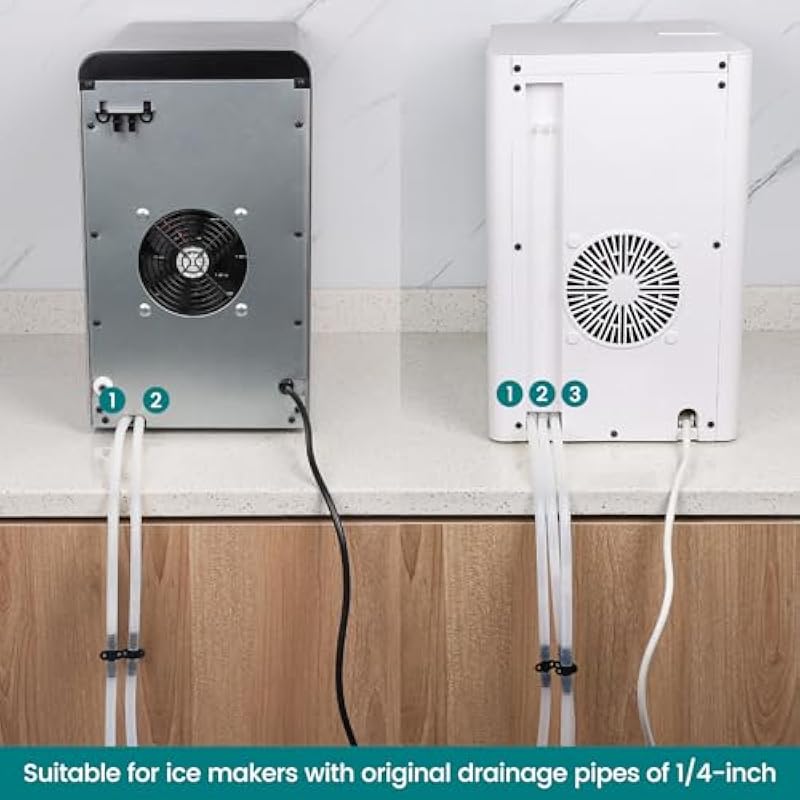 - 𝐒𝐚𝐯𝐞 𝐘𝐨𝐮𝐫 𝐄𝐟𝐟𝐨𝐫𝐭 – Makes draining of your ice maker an easy task, move your ice maker to a sink is now history. When purchase a new ice machine, remember to check if the fixed drain hoses are long enough for your planned location.