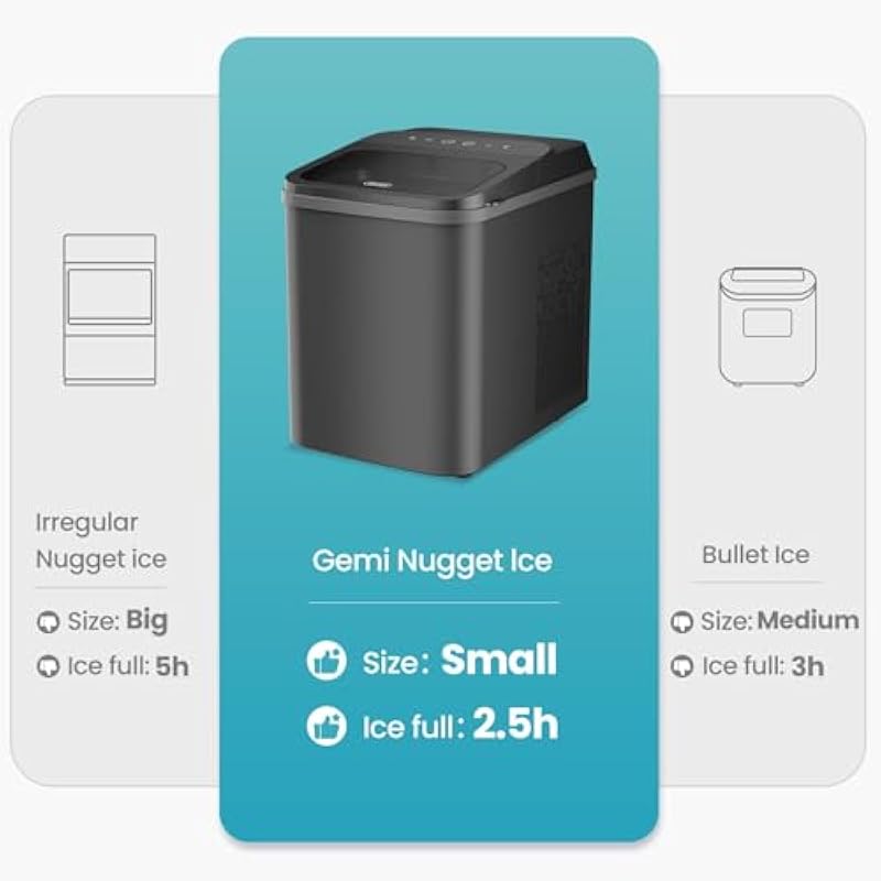 - 【5-Min Chewable Nuggets】Enjoy first sip in 5-8 minutes with GEVI’s ultra-fast ice maker! Crush-resistant pellet ice cools drinks 3X faster than regular cubes while preserving full flavor. Soft-textured nuggets are gentle on teeth.