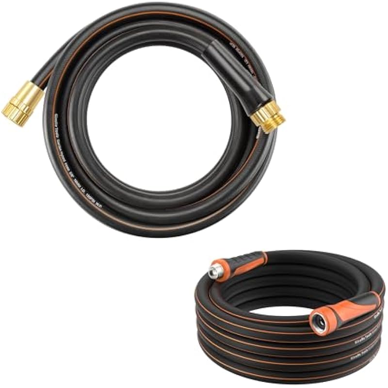 - No Leak & Easy Manipulation: Equipped with male to female 3/4″ all brass connector with black sheath, standard threads to easily connect the hose to a faucet or hose reel. Lighter hybrid material helps you to coil and handle hose with little effort
