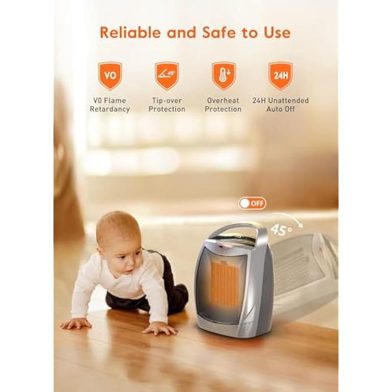 - Safe for Kids and Pets: The heater is made of flame retardant material to achieve zero fire hazard; automatic overheat protection system will shut the unit off automatically when reaching overheat limit; tip over switch at the bottom will be triggered and the unit will be shut off in tilted or tripped over condition and 24H unattended auto off.