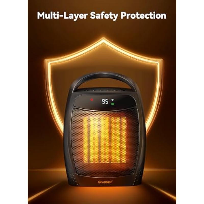 - [Certified Safety Protection] GiveBest space heater ensures complete peace of mind with a multi-protection safety system for indoor use. It features certified tip-over and overheat protection, plus V-0 grade fire-resistant materials, providing layered safety to prevent fire hazards. Safety is built into every detail of this portable heater.
