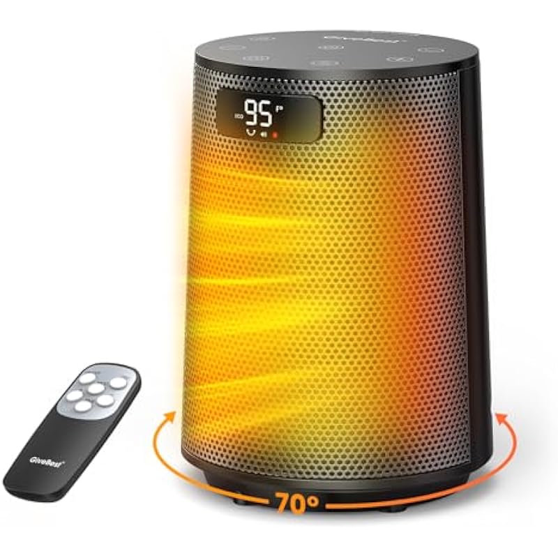 GiveBest Space Heater, Electric Portable Heaters for Indoor Use with Thermostat and Remote, 70°Oscillation, Digital Display, 12H Timer, 1500W PTC Ceramic Fast Safety Heat for Office Bedroom Home Desk