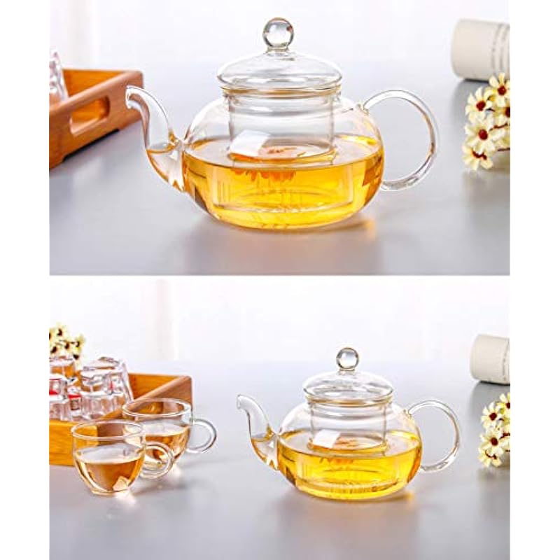 Glass Teapot 20oz with Infuser,Borosilicate Kettle Set Tea Pot for Loose Tea, Flowering Teas,Stovetop and Microwavable Safe(600ml)