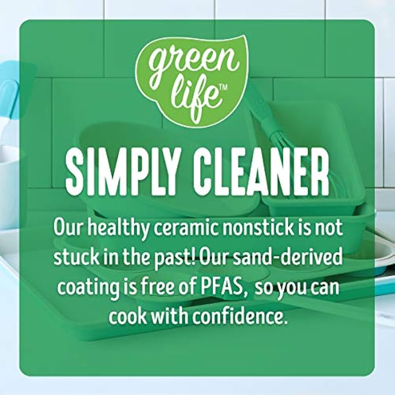 GreenLife Cooking Tools and Utensils, 5 Piece Nylon and Silicone Baking Set with Spatulas Wisk and Brush, Dishwasher Safe, Turquoise