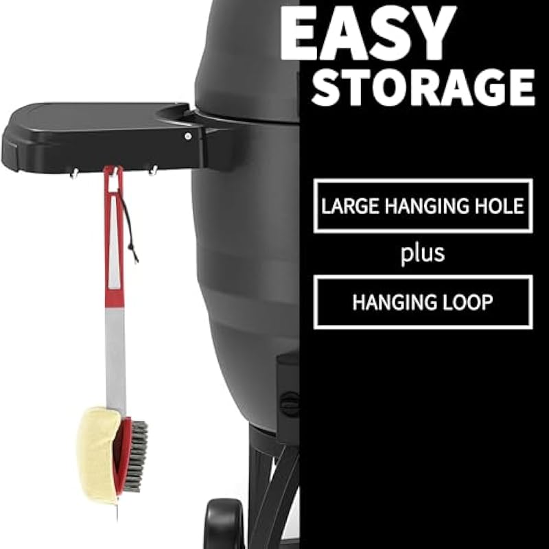 - SOLID MULTI-GROOVE SCRAPER – Built-in solid integrated multi-groove scraper, the scraper is for tough jobs on the grill, like removing baked-on foods, hard cooked-on juices and sauces, other stubborn residues.