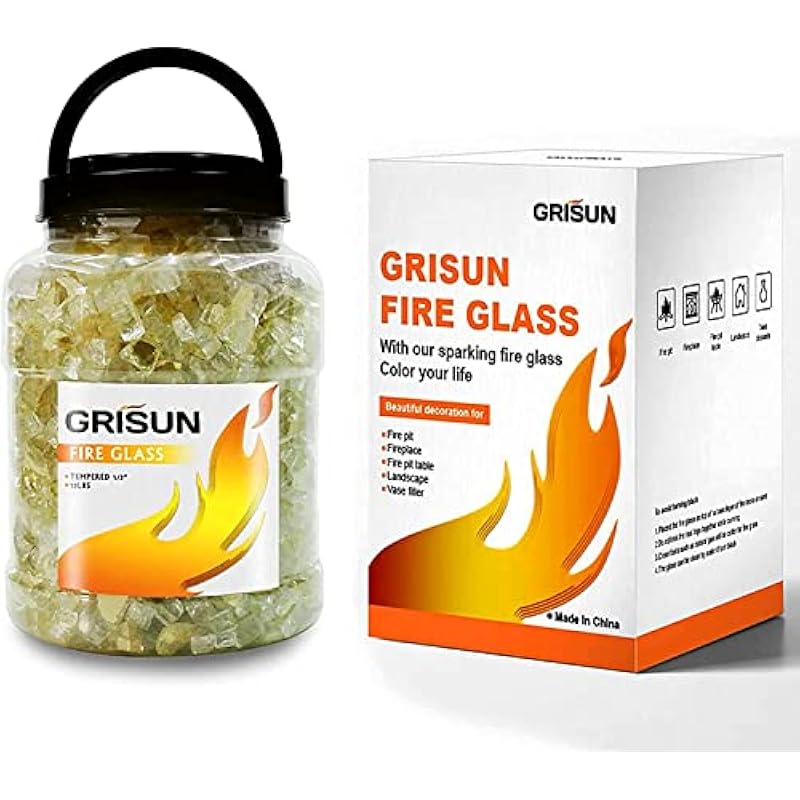 GRISUN Gold Fire Glass for Fire Pit, 30 Pounds 1/2 Inch High Luster Reflective Tempered Glass Rocks for Natural or Propane Fireplace, Safe for Outdoors and Indoors Firepit Glass ASIN: SKU: B09B1WC7TQ