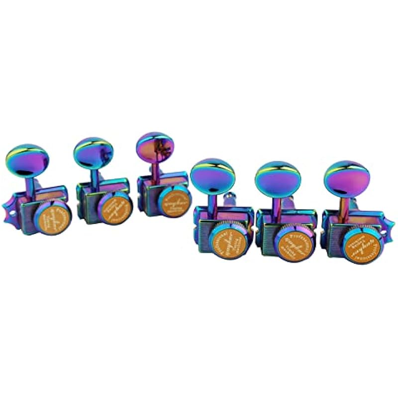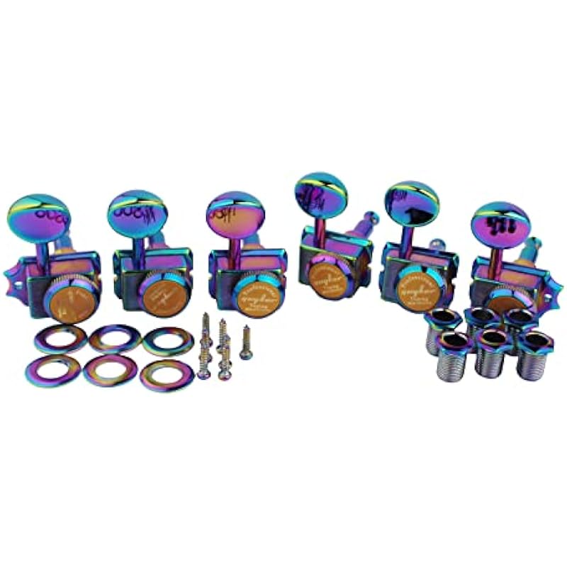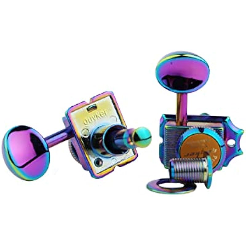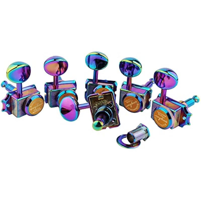Guyker 6-in-line Vintage Guitar Lock String Tuners – Locking Tuning Key Pegs Machine Heads Replacement Parts for ST TL Style Electric Guitars Gear Ratio 1:15 – Chameleon Rainbow