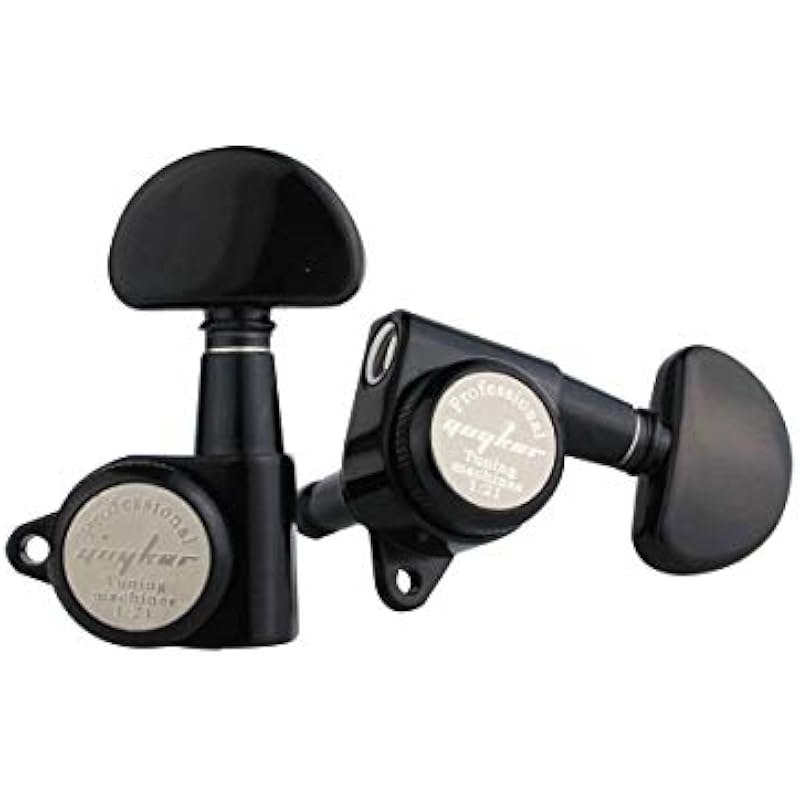 Guyker 6Pcs Guitar Locking Tuners (3L + 3R Handed) – 1:21 Lock String Tuning Key Pegs Machine Heads with Half-Circle Handle Replacement for LP SG Style Electric, Folk or Acoustic Guitars – Black
