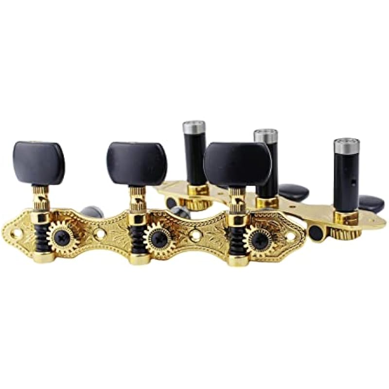 Guyker Classical Guitar Tuners, 1:18 Ratio Open Frame Style Acoustic Guitar Tuning Keys Steel String Pegs Machine Heads 2 Planks (3+3) (Gold, Black Button)
