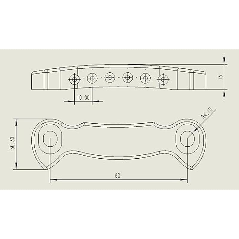 - Tailpiece studs distance: Approx. 82 mm. Whole tailpiece Width x Height: Approx. 30.30mm x 15mm. Tailpiece String spacing: Approx. 10.6 mm. Please check the parameter drawing in the attached pics before placing your order.