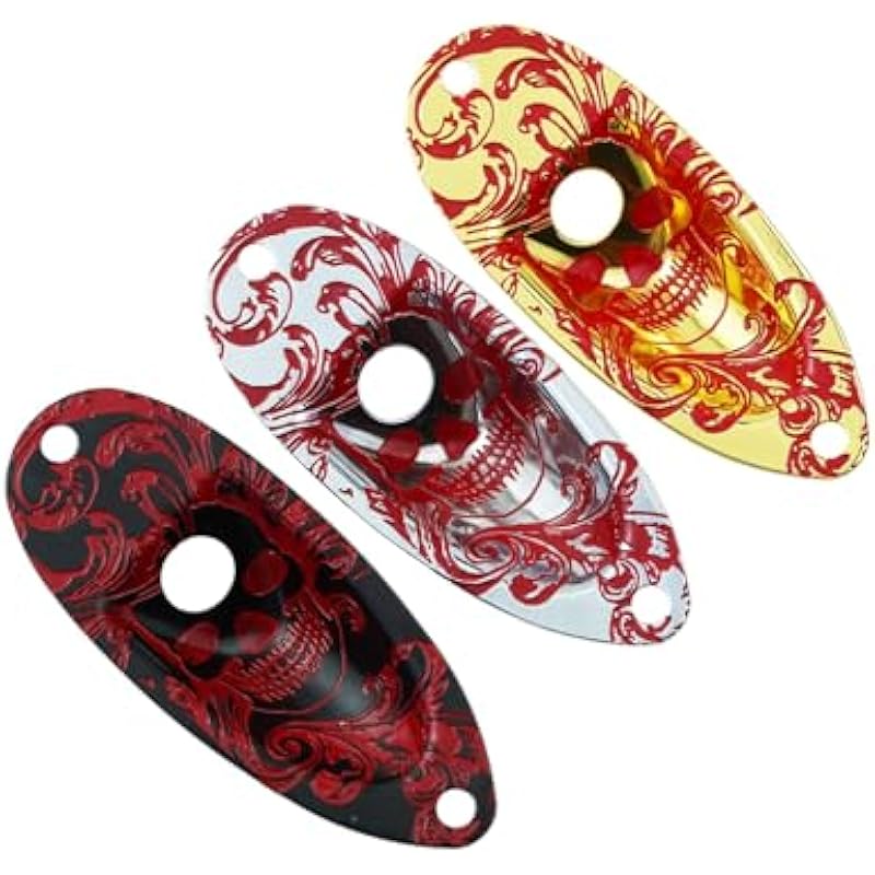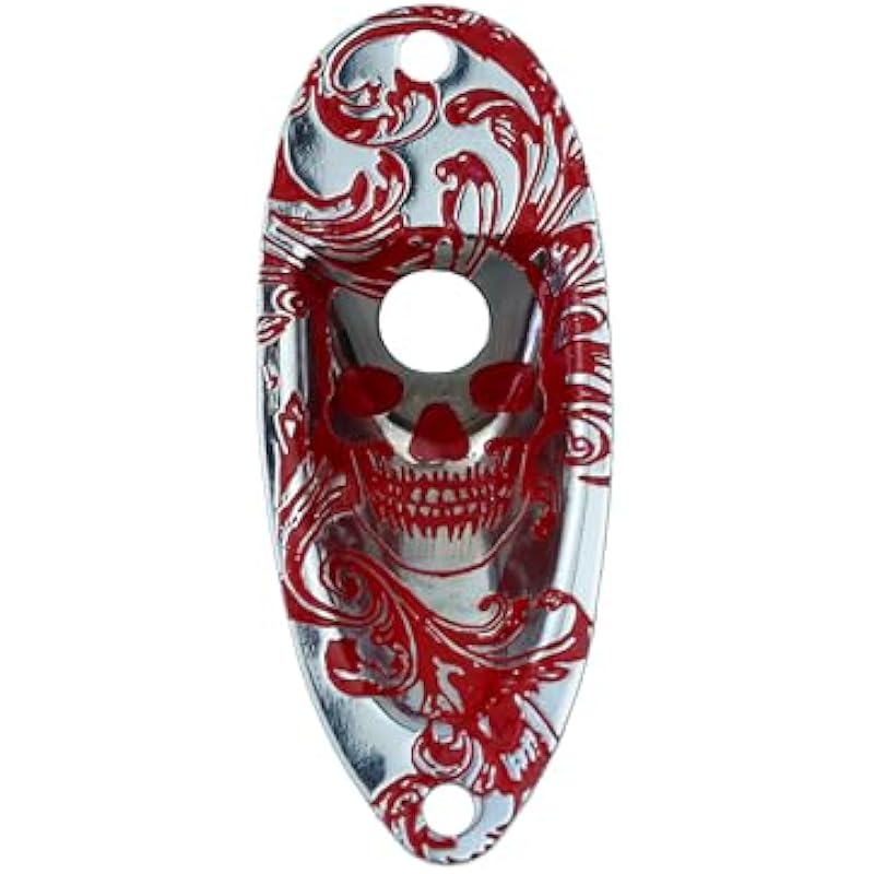 Guyker Guitar Input Jack Plate, Metal Oval Boat Shape Jackplate Socket Ferrule Output Curved with Skull Pattern for Electric Guitar Bass Replacement Parts (GJ006, Chrome)