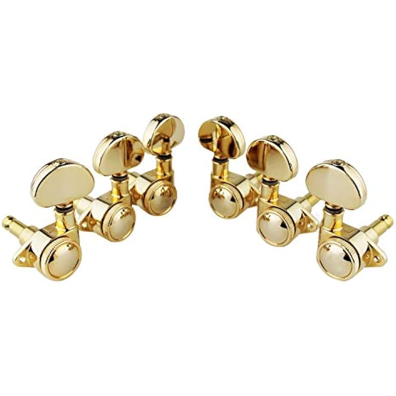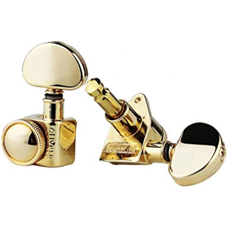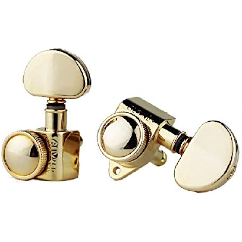 Guyker Guitar Locking Tuners (3L + 3R) – 1:21 High End Roto-Grip Rotomatic Lock String Tuning Key Pegs Machine Head with Big Handle Replacement for Electric, Folk or Acoustic Guitars – Gold