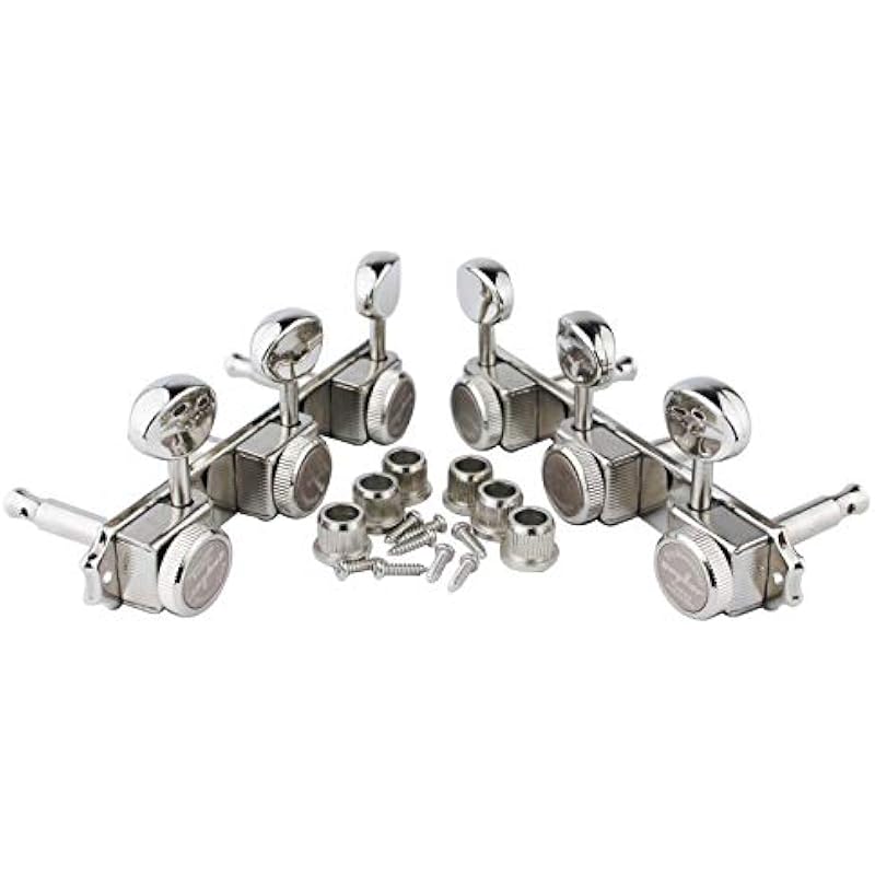 Guyker Guitar Locking Tuners on a Plate 3R-3L – Vintage Style Lock String Tuning Key Pegs Machine Heads Replacement, Nickel