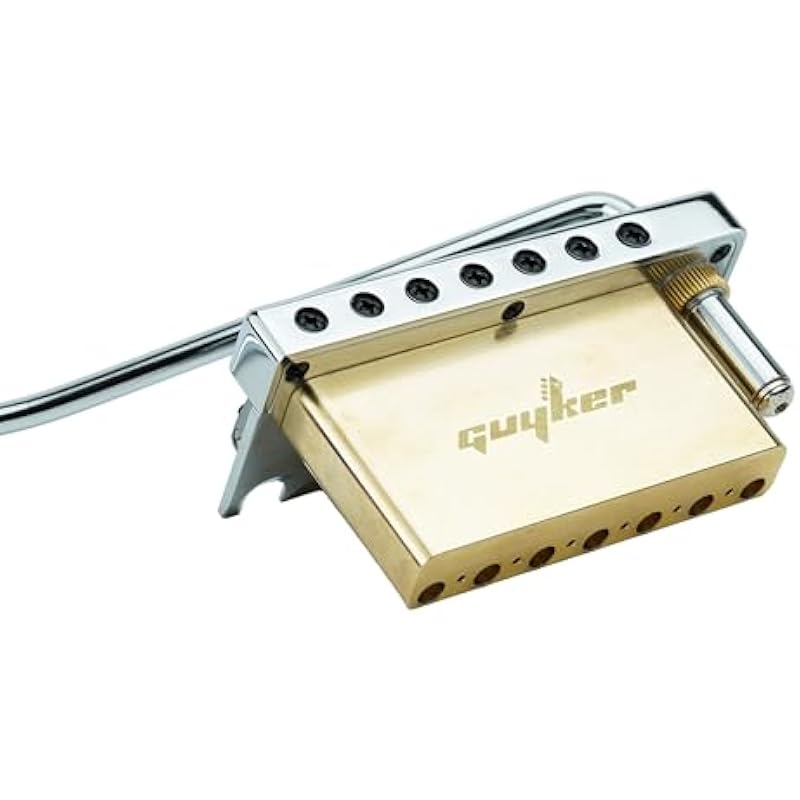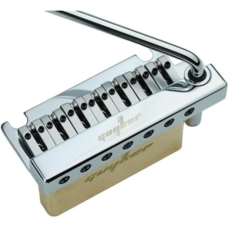 Guyker Guitar Tremolo Bridge String Spacing 10.8MM with Brass Saddle & Block & Steel Base Plate, Non-locking 2 Point Double Shake 7 String Guitar Bridge Pop-In Vibrato Bar CNC Machine, Chrome GG1009-7
