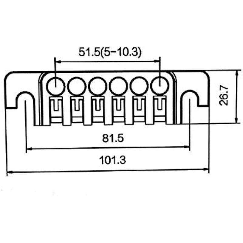 - Saddle bridge post spacing: Approx. 73.5 mm (2.89 inch), bridge string spacing: Approx. 10.4mm (0.41 inch), bridge width: Approx. 84.5 mm (3.33 inch). Roller saddle bridge stud insert diameter Φ6.3.