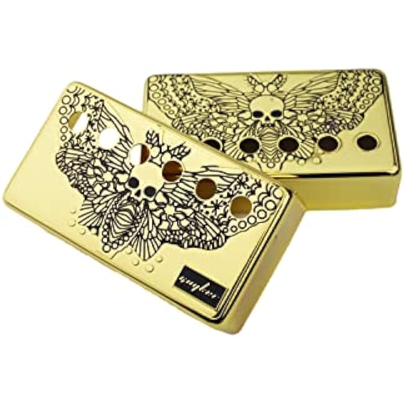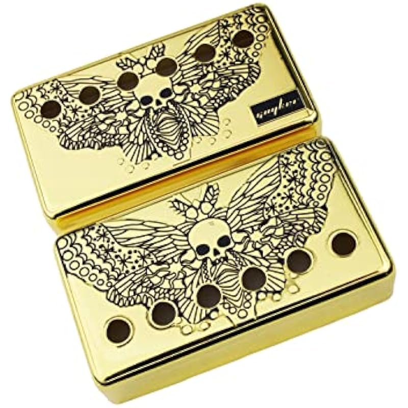 Guyker Humbucker Pickup Cover (50mm/52mm Pole Spacing) – Cupronickel Bridge and Neck Pickups Frame Set Replacement Parts for Les Paul LP Style Electric Guitar, Skull Wing Style, PC007 Gold