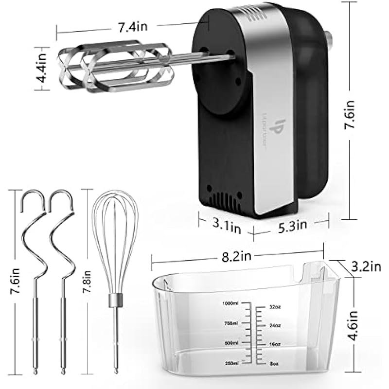 - ❤SCALE CUP STORAGE CASE : When you’re using the Hand Mixer, Water and Flour can be holded in the box As scale cup . Parts can be placed in the box when you finish the using.All of the attachments store neatly in a storage base for not to lose in the kitchen