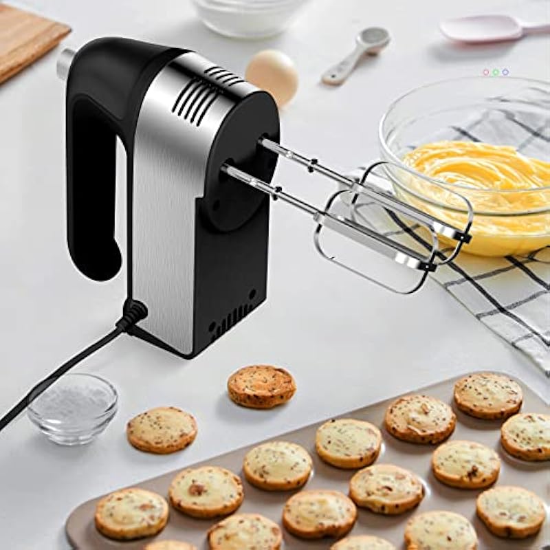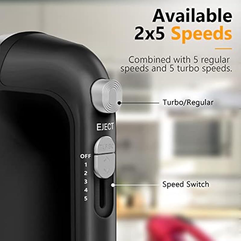 - ❤5 VARIABLE SPEED SETTINGS AND EXTRA TURBO BUTTON : With a 450W motors and 5 different Speeds to help you whisk, mix and knead and the turbo of the hand mixer can help you more efficient and quick