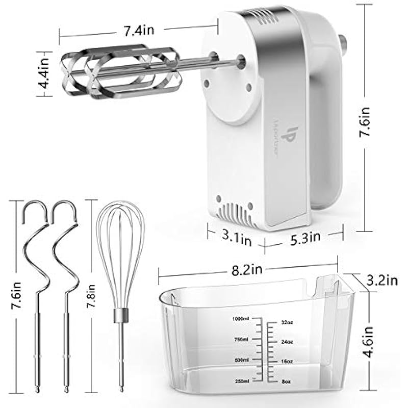 - ❤SCALE CUP STORAGE CASE : When you’re using the Hand Mixer, Water and Flour can be holded in the box As scale cup . Parts can be placed in the box when you finish the using.All of the attachments store neatly in a storage base for not to lose in the kitchen