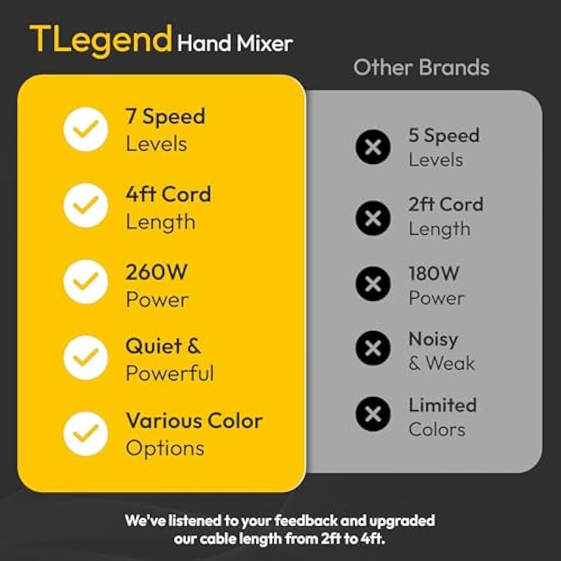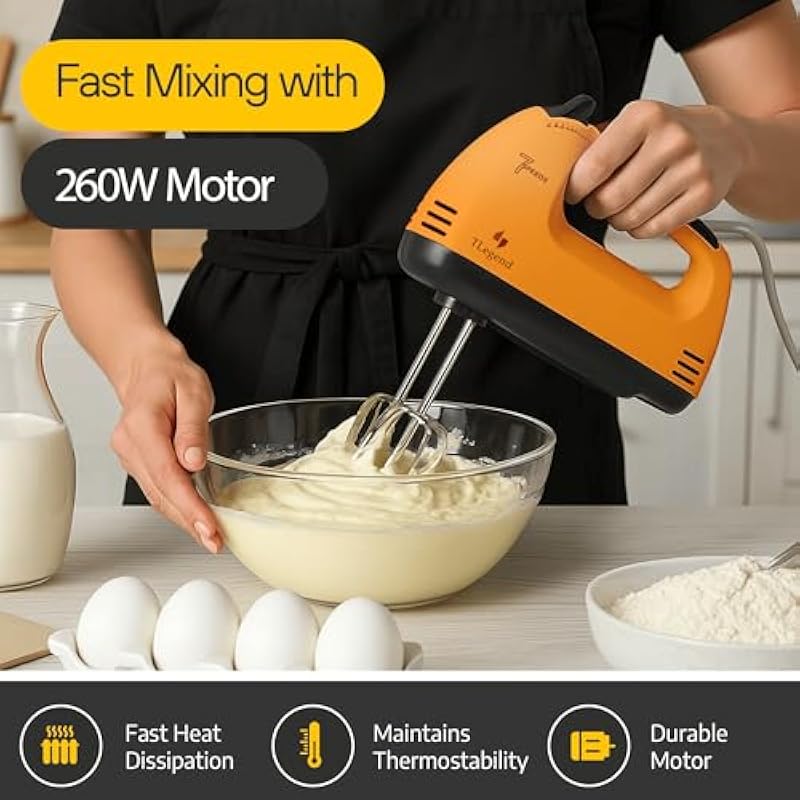 - Portable & Easy to Use and Store: TechnoLegend hand mixer electric handheld is not only powerful but also incredibly portable and user-friendly. You can easily carry it around the kitchen, making it ideal for mixing ingredients wherever you need. When you’re finished, the sleek, compact design makes it easy to store in tight kitchen spaces. This handheld mixer is easy to use and clean. Whether you’re storing it on the countertop, this kitchen mixer is designed for hassle-free storage.