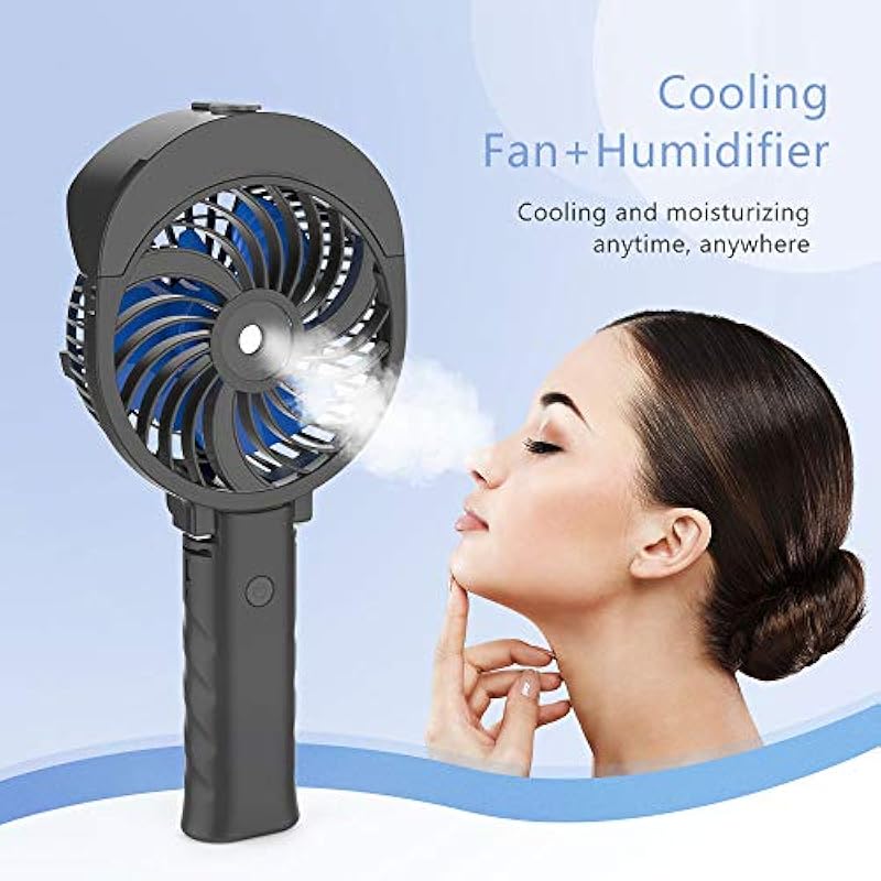 - Set a 55ml water tank on the top of the fan, this handheld misting fan can continuously spray for about 40 minutes after fully filling with water, you don’t need to add water frequently,just long press the button for 3 seconds to activate/stop mist mode, and enjoy the whole cool day.