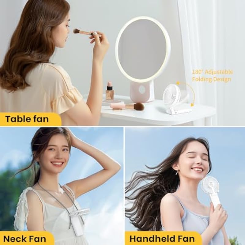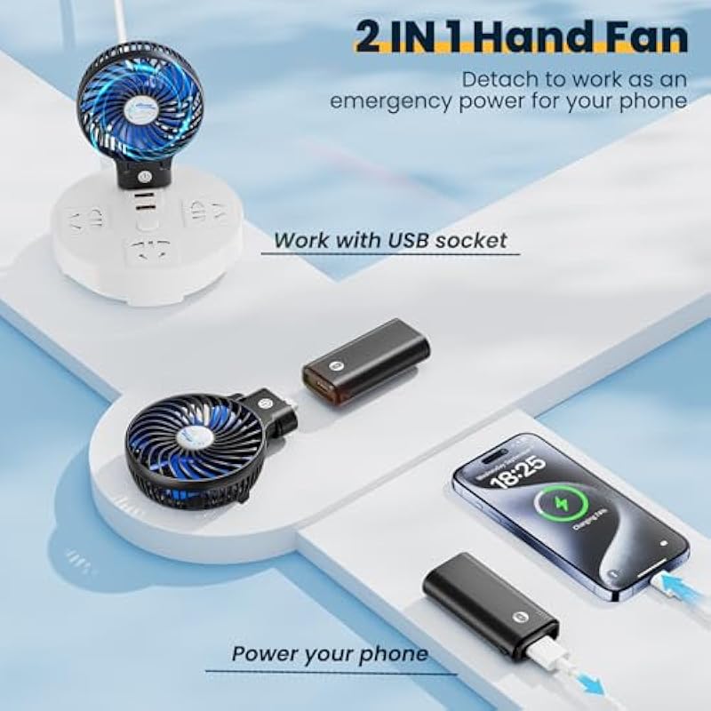 - Item 1:HandFan Portable Handheld Fan with Power, 2 IN 1 Hand Fan, 5200mAh Rechargeable Battery Operated, Personal Foldable Makeup Fan, Portable Cooling Fan for Travel/Summer/Concerts/Lash(Black&Blue)
