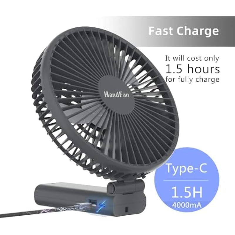 - 【2 in 1 Handheld & Desk Fan】: This usb powered fan could also work as a desktop fan with enclosed base, just put the fan in base to free your hands while reading, playing games, studying or working.