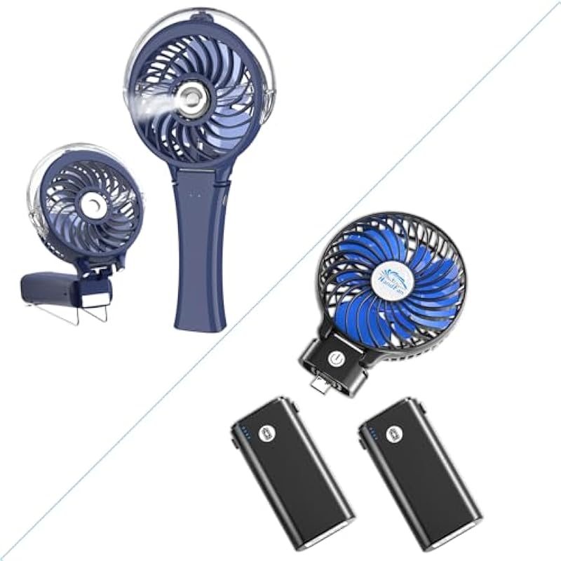 - What You Get: A portable misting fan and a portable fan with two battery packs.