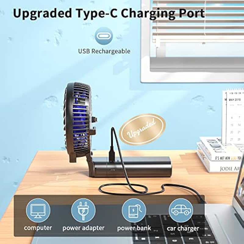 - Key Features of Portable Fan: Two portable chargers, one for cooling, the other for backup, Keep cool all the time, no need to charge midway