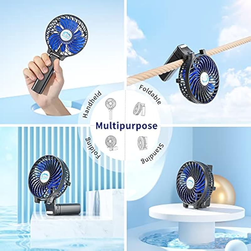 - [3 IN 1 DESIGN]: Adopt foldable handle design, the fan head can be adjusted from 0°-180°, so it can be used on desk for cooling or hold it on hands for cooling. Comes with a metal clip, it’s also a hanging fan, you can also hook it on your sunshade, stroller or car via the metal clips, keep you cool any time any where
