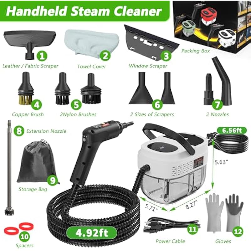 - Stylish & Safe Design with Color Options: Available in 3 color choices, this portable steam cleaner features durable materials and includes gloves for safety. Note: The steam hose gets hot during use—please handle with care to avoid burns