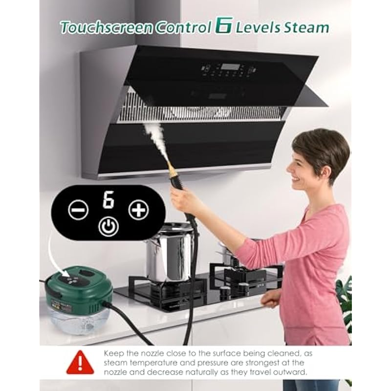 - [Full Control in Your Fingers] Designed for simple operation, this handheld steam cleaner uses a touch screen so you can choose different steam levels according to different cleaning tasks. TIPS: ON/OFF switch is on the machine touchscreen instead of the handle.