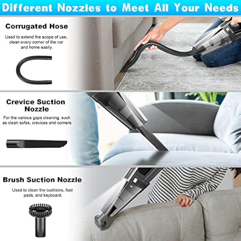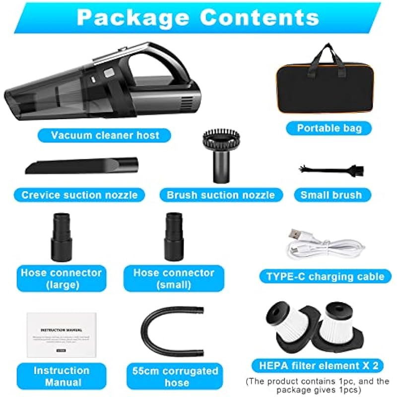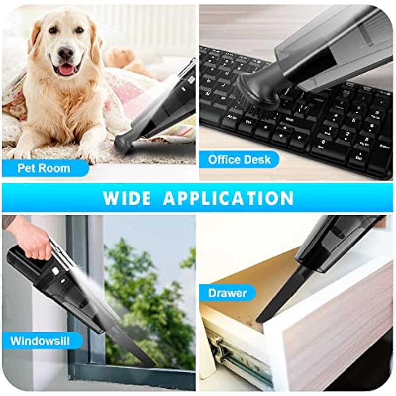 - Upgraded Technology Provides Powerful Suction: The portable vacuum cleaner features an ultra-powerful motor with 11000 Pa suction powers. It provides all-round cleaning for all corners of your home, office or car. Perfect for daily sucking on pet hair, cat litter, paper debris, and crumbs, etc. If you are looking for a portable vacuum cleaner for quick small jobs, it will be perfect for you.