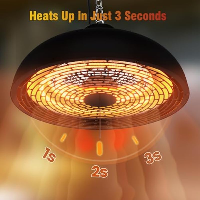 - 【ENVIRONMENTALLY FRIENDLY & SAFETY】Infrared heater produces no noise, odors or fumes. Beside, If the patio electric ceiling heater is overheating, it will automatically shut off.