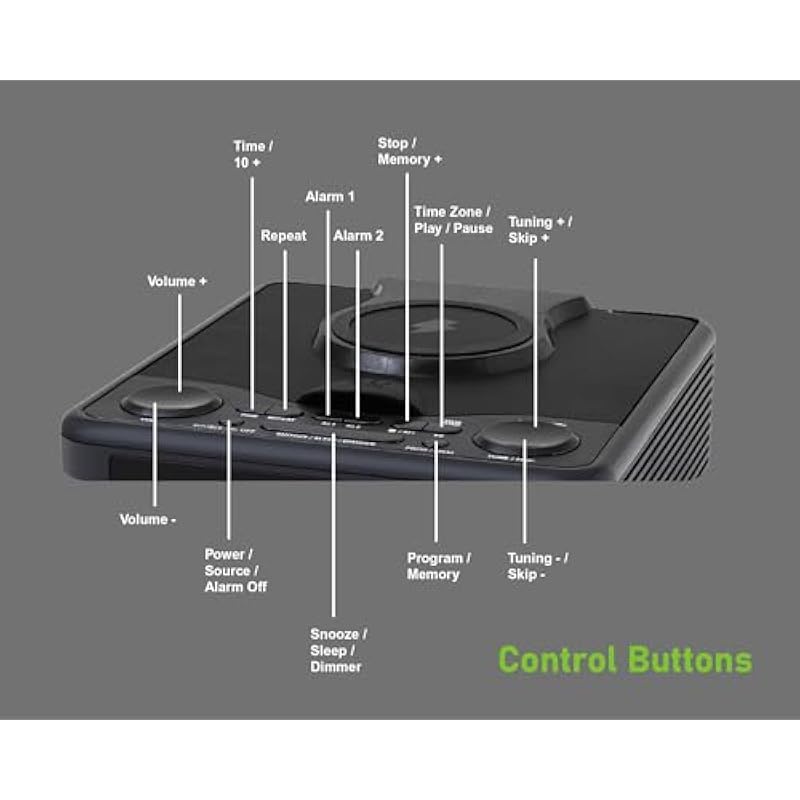 - Digital Clock with Dual Alarm (Wake to CD, Buzzer or Radio) : Dual alarm setting is simple and the alarms are independent, so both bedmates need only this one alarm clock. SLEEP TIMER allows you to listen to the radio/music while you fall asleep. Whenever the alarm activates, it can be suspended for a short period of 9 minutes by pressing the SNOOZE button once.