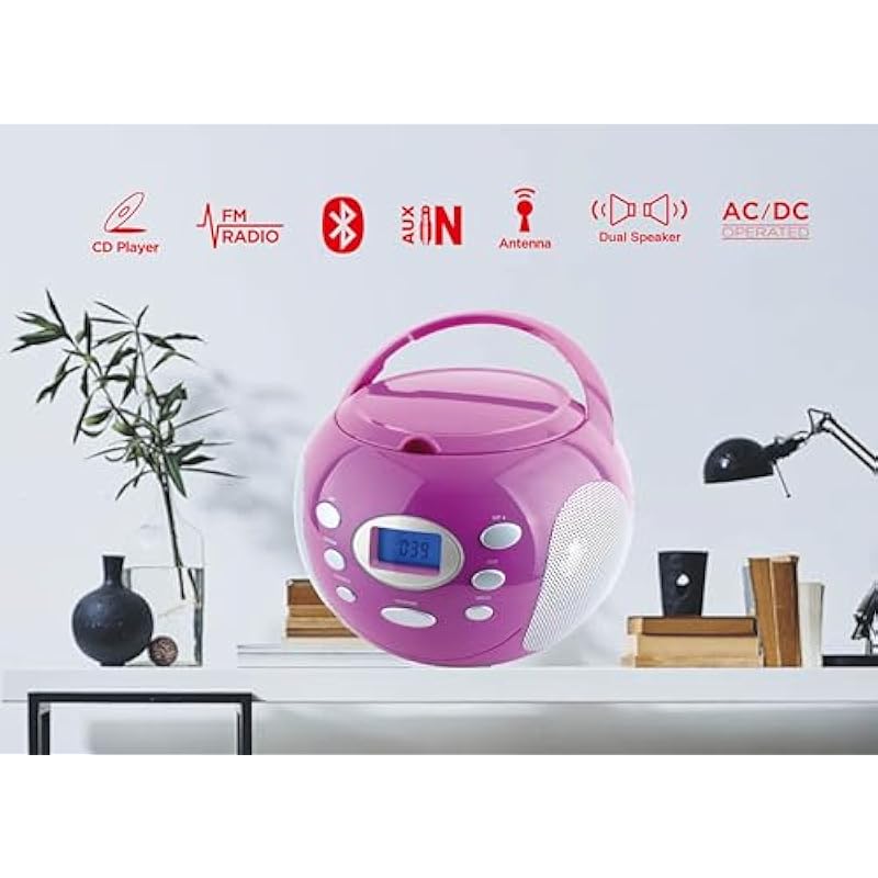 HANNLOMAX HX-305CD Portable CD Boombox, PLL FM Radio, Bluetooth, LCD Dislay with Backlight, Aux-in, AC/DC Dual Power Source (Purple)