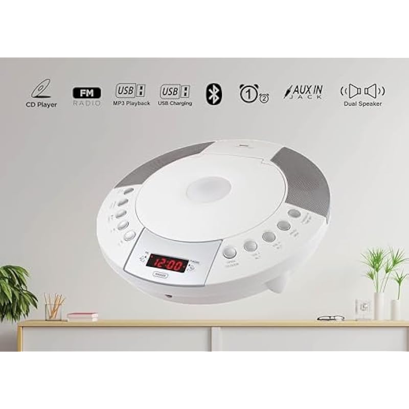 HANNLOMAX HX-330CD CD Player, FM Radio, Bluetooth, Alarm Clock, Red LED Display, USB Port for Charging and MP3 Playback, Aux-in, Remote Control Included, AC Operation only. (White)