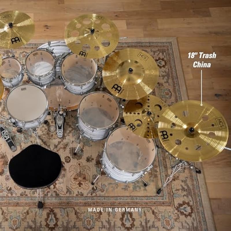 HCS 18” Trash China Cymbal with Holes for Drum Set — MADE IN GERMANY — Traditional Finish Brass, 2-YEAR WARRANTY