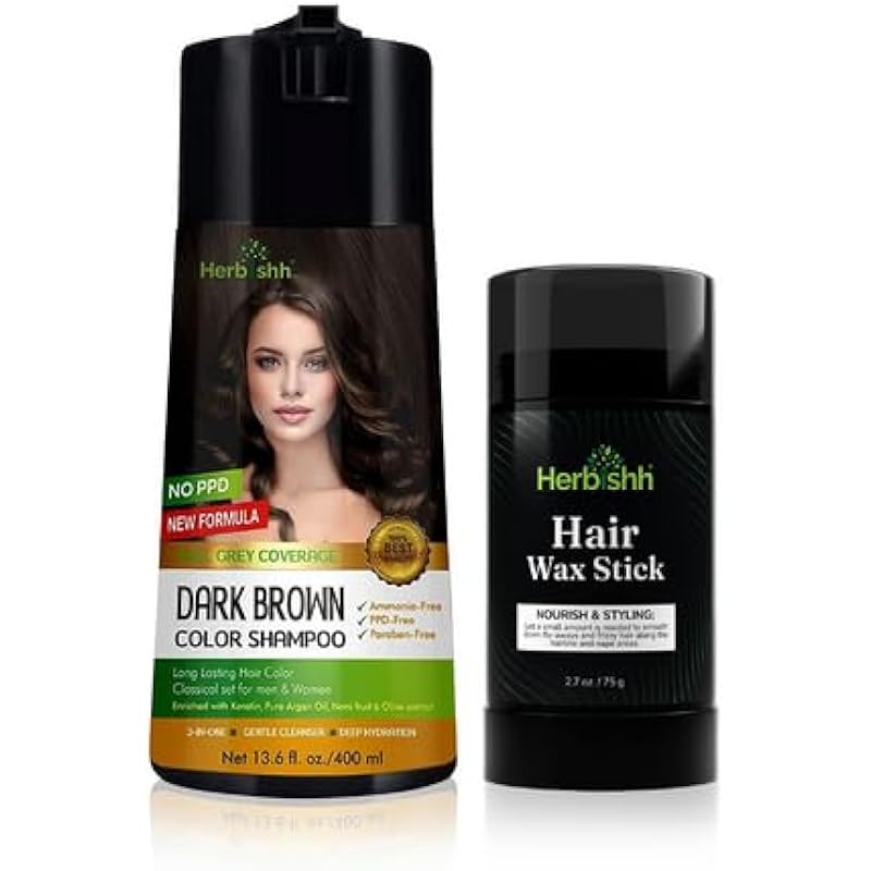 Herbishh Hair Color Shampoo (Dark Brown) – 400 mL + Hair Wax Stick