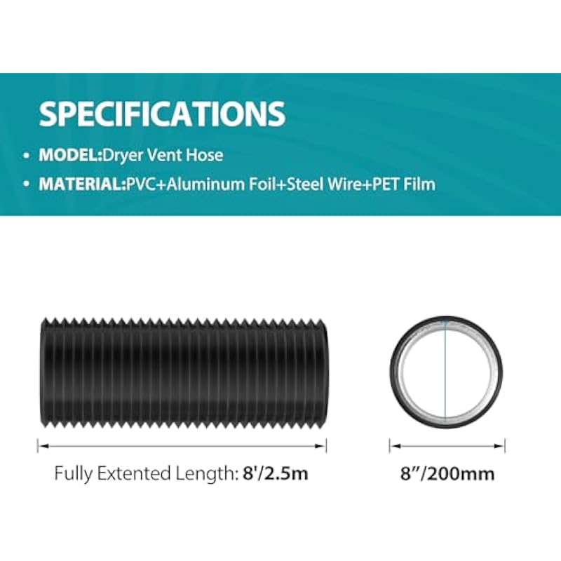 - Durable & Secure Connection:Galvanized steel fan housing + 3-layer aluminum duct hose (heat-resistant) + ABS vent cover for long-lasting use