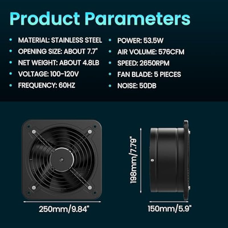 - Easy Installation & Multi-Purpose Use:Works for kitchen exhaust, bathroom humidity control, attic cooling, dryer venting, and HVAC systems—fits walls, windows