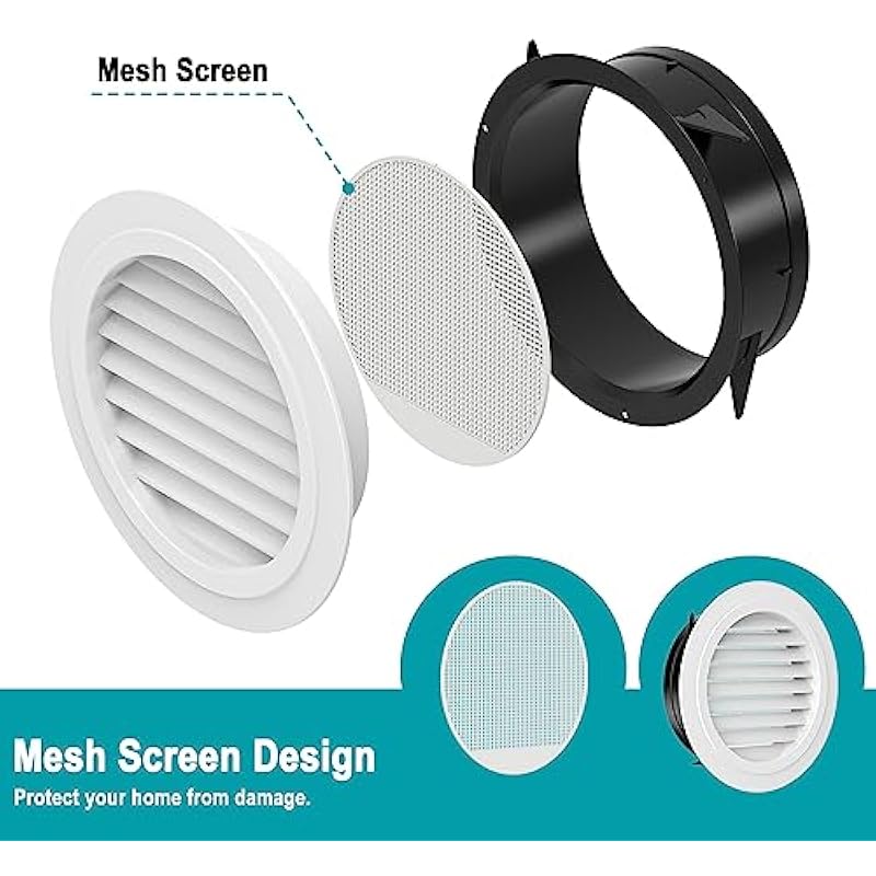 - Protection Against Debris & Backdrafts:Built-in screen mesh on vent cover blocks Debris, while the fan’s damper prevents reverse airflow