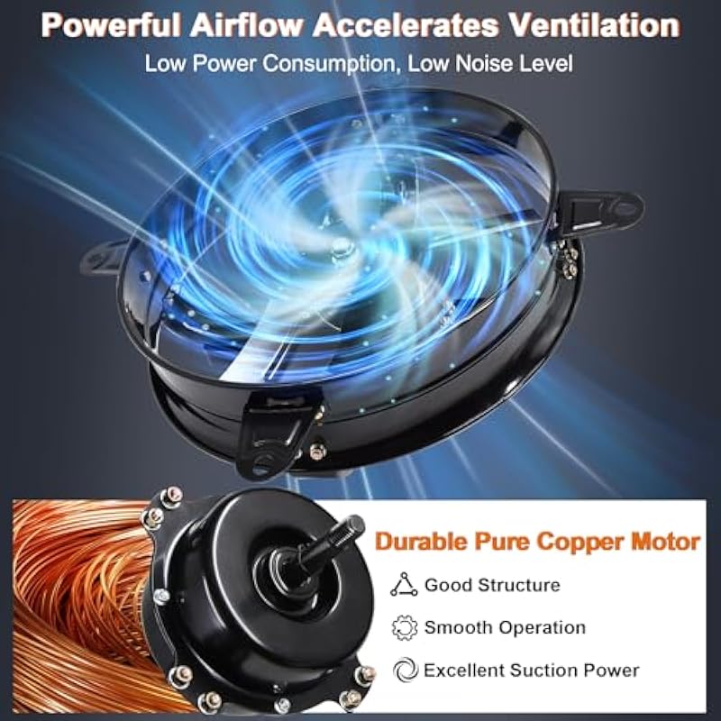 - Quiet Operation: With a maximum speed of 1080 R/min, the exhaust fan is designed to provide excellent performance, ensuring that your space is ventilated quickly and efficiently and that you can say goodbye to stuffy rooms, and despite the strong airflow, it operates quietly so that you can enjoy a peaceful and noiseless environment, making it ideal for exhausting and de-dusting warehouses, garages, greenhouses, and workshops