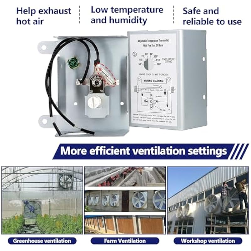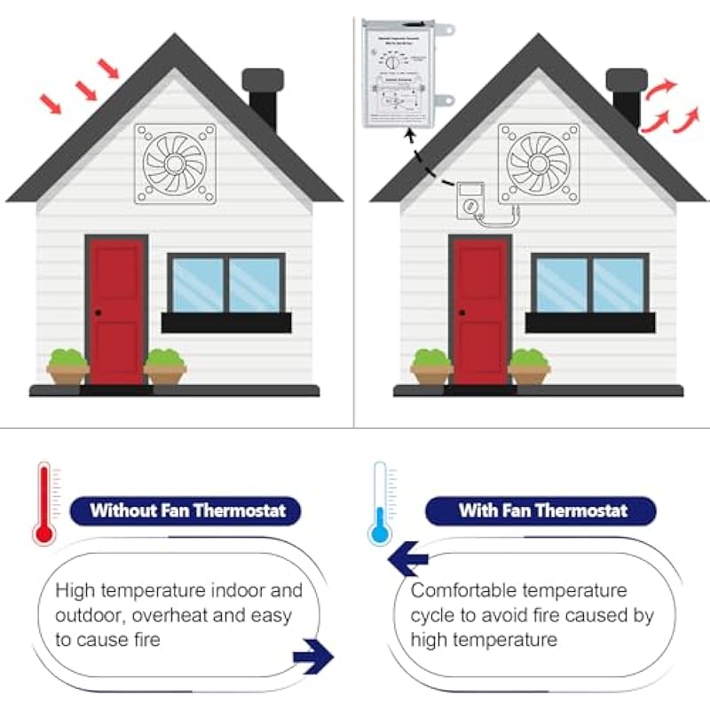 - Finger Dial with Adjustable Temperature Switch: This attic fan thermostat has a finger dial switch with clear arrow indications to make it easier for you to rotate it to adjust temperature points, Keep your attic cool and efficiently managed with our reliable attic fan thermostat replacement
